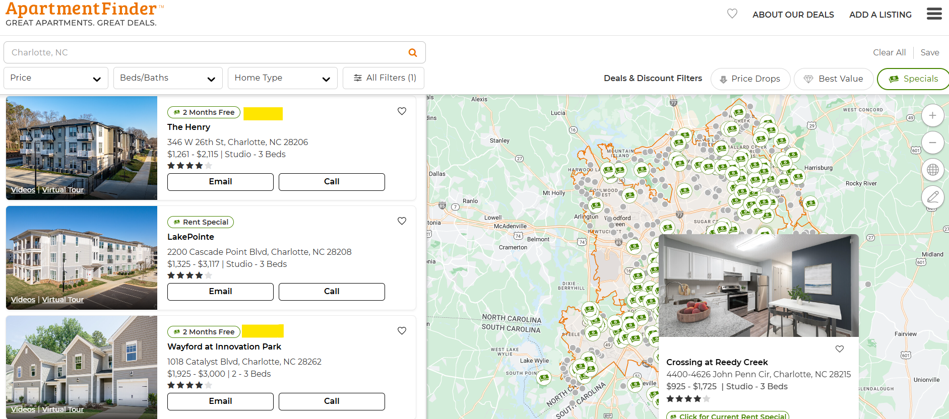 This Apartment Finder website makes it easy to find move in specials
